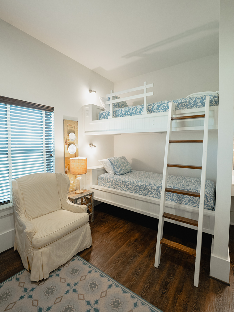The home at Hunt Retreat features two 71’ porches, 8,800 sq. ft. of air-conditioned living space, 10’ ceilings throughout, 9 bedrooms, 9 1/2 baths (2 of which are ADA compliant), a full kitchen with seating for approximately 30, a central great room with fireplace and cozy seating, and a spacious game room.