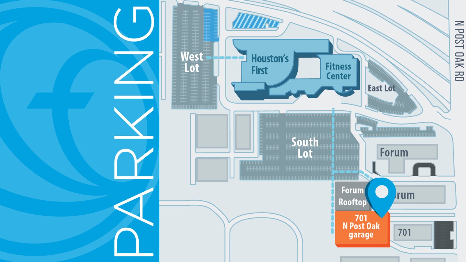 estacionamiento oeste de Houston’s First - the Loop Campus. Quienes asistan a los Estudios